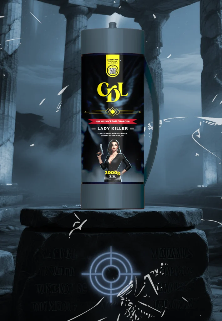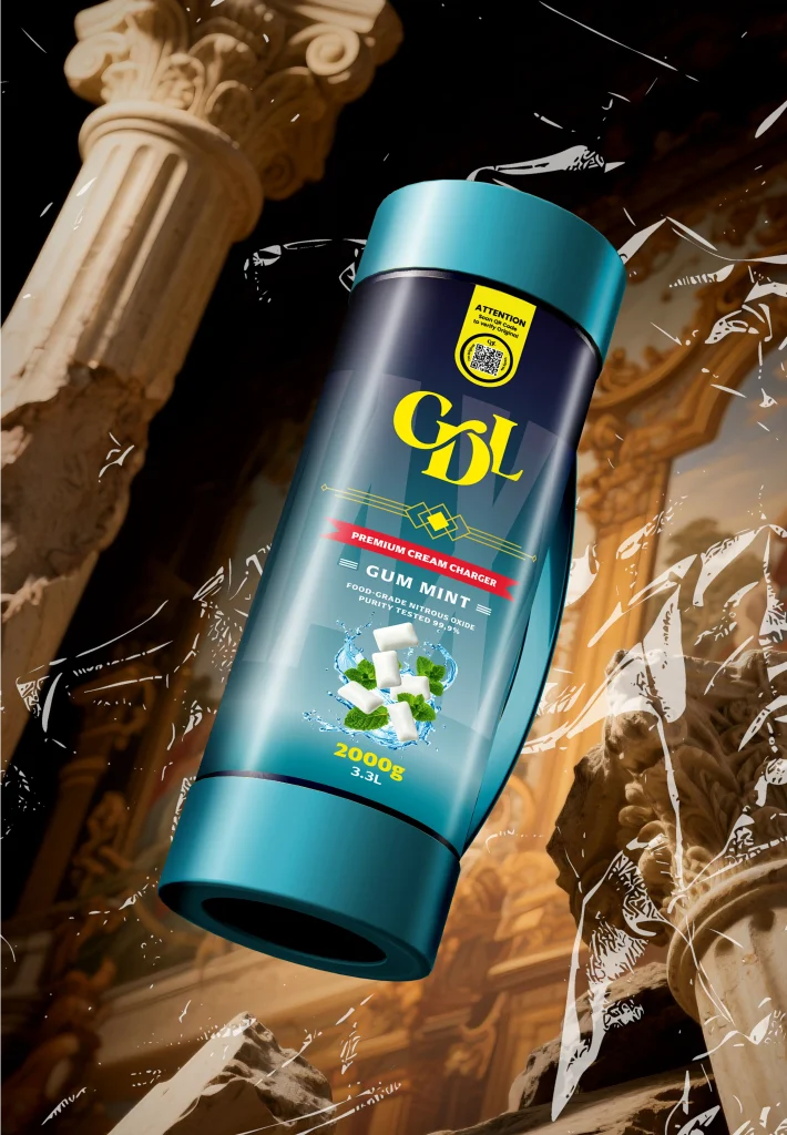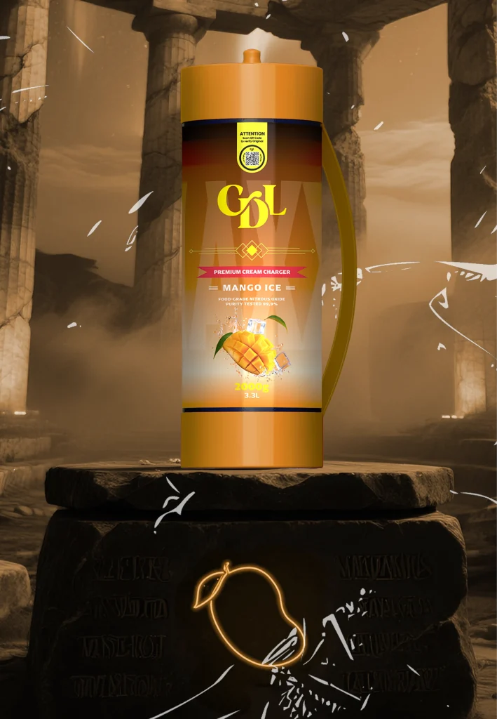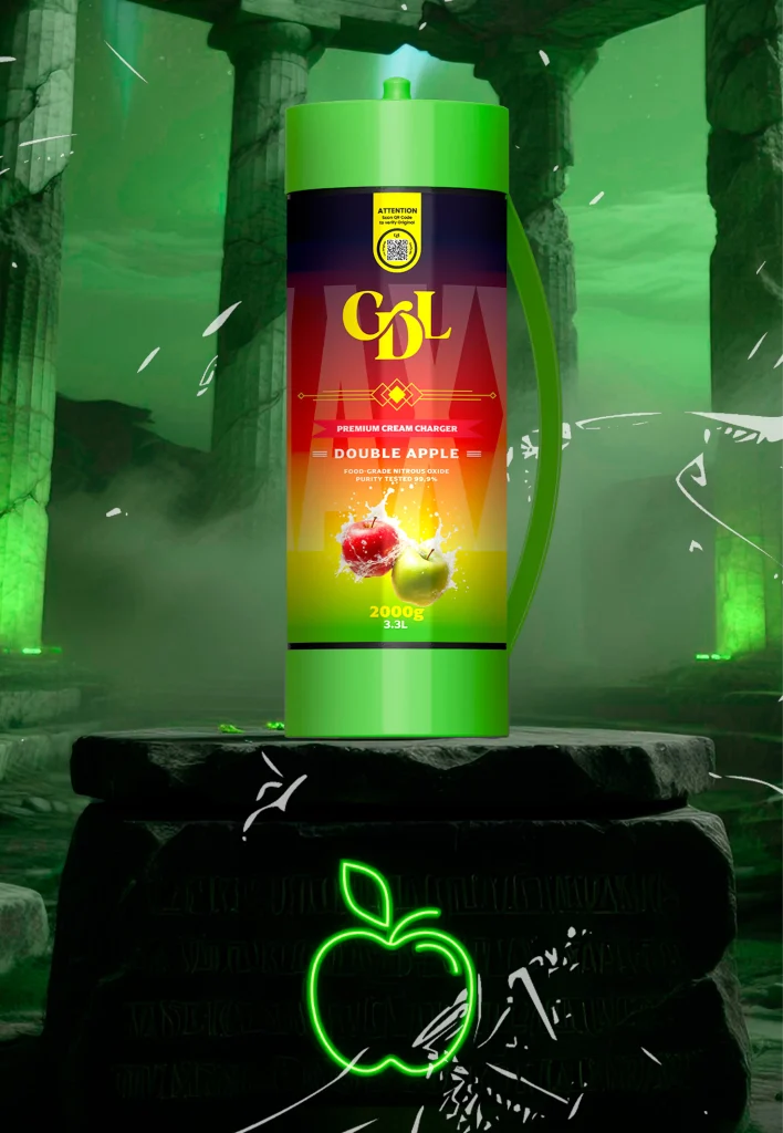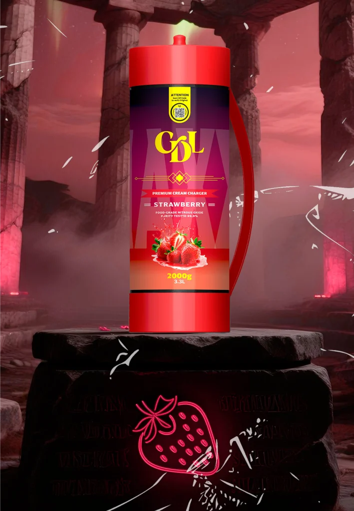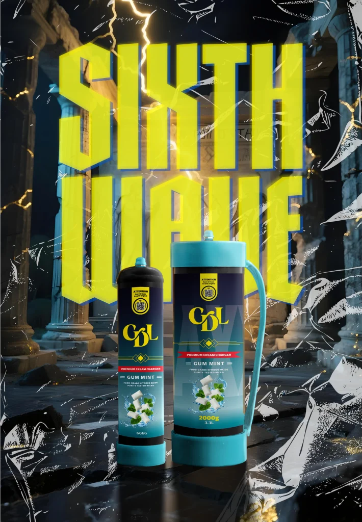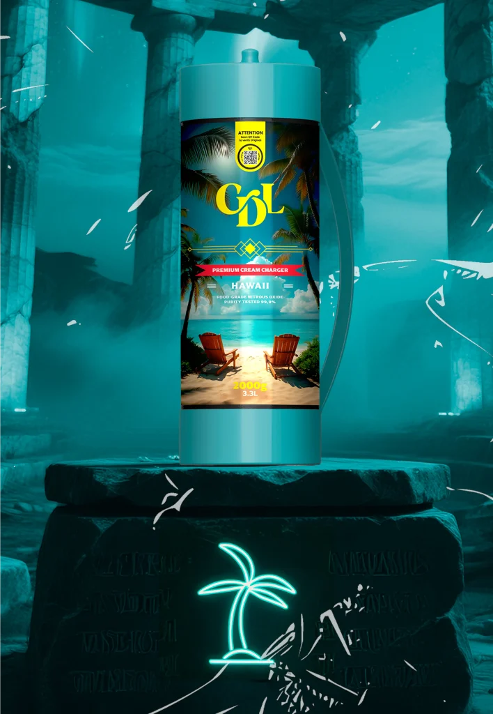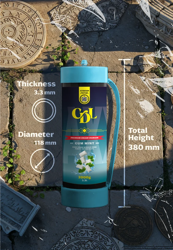 2000 grammes de N2O de qualité alimentaire d'une pureté testée de 99,9% enveloppés dans de l'acier de haute qualité. Cream Deluxe Sixth Wave Edition MAXXI est équipé d'une poignée en plastique pour être transporté en toute occasion.